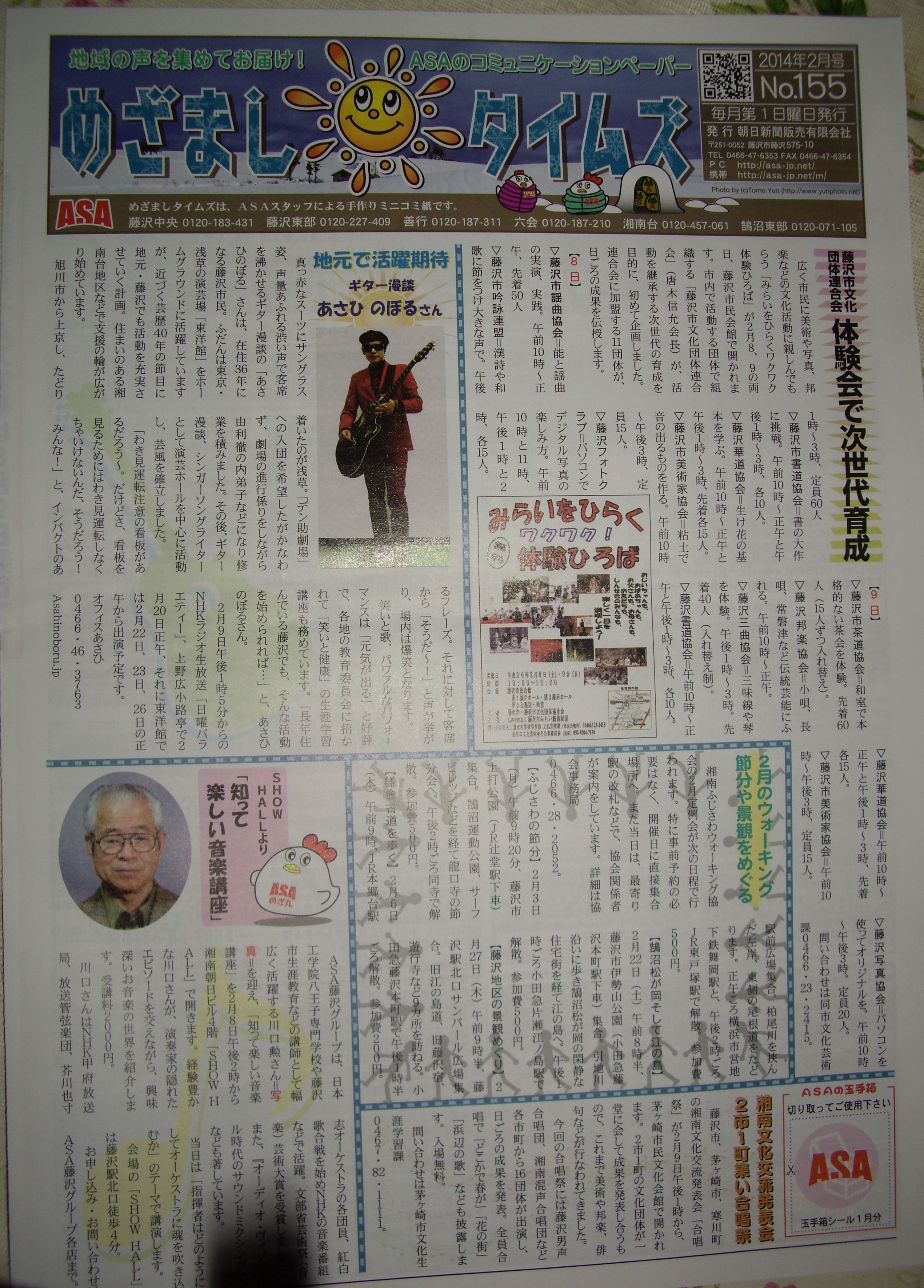 って今日のオイラの歌「はずがない2番」。今日朝日新聞藤沢版ミニコミ誌にオイラの記事が掲載されました!UPしておきますね。